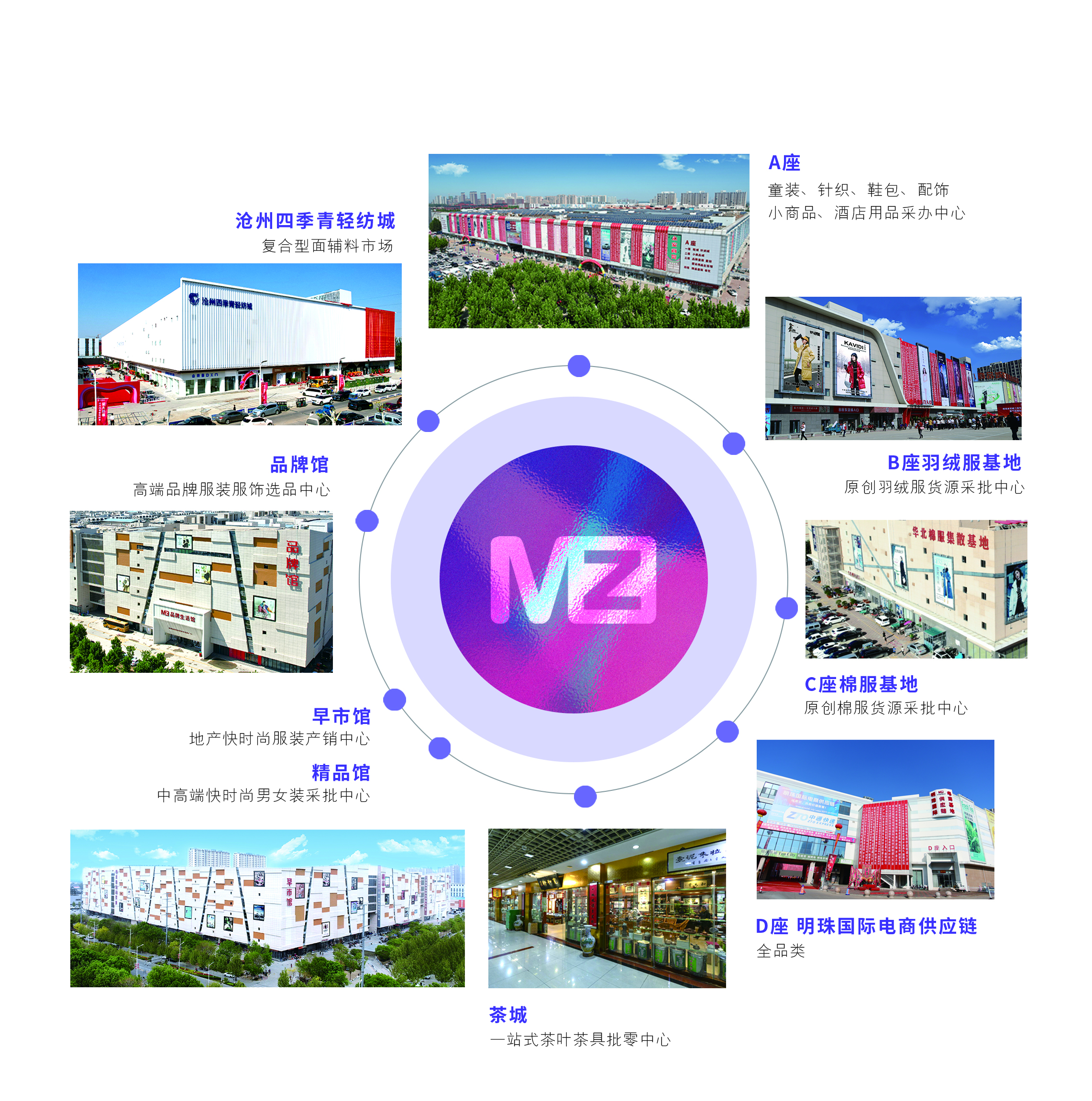 明珠A座以童装为核心业态,集合童装、童鞋、玩具、孕婴用品等相关产业。2022年市场重磅升级,集结鞋类、小商品、酒店用品等优势业态,同时原北京佰蓉童装、童装羽绒服1000余家实力厂商抱团入驻。品类更齐全,业态更丰富,打造建筑面积13万平方米的一站式综合采批市场。